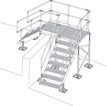 В портфолио конструкций для безопасного прохода имеются три модульных переходных мостика марки Big Foot, позволяющих безопасный проход персонала к оборудованию на поверхности крыши. Они доступны с двумя, тремя и четырьмя ступеньками и 1м лестничной площадкой, 4 ножки на каждом переходном мостике поставляются с 305мм подножками и противовибрационными ковриками для устойчивости конструкции. При этом переходные дорожки марки Big Foot являются идеальным решением для прокладки четких и безопасных направлений движения вокруг установок на плоских крышах, предлагая безопасные пути доступа к оборудованию для осуществляющих обслуживание инженеров и для организации движения другого персонала. Крупноклеточная решетка, в виде которой сделана вся поверхность дорожек, обеспечивает нескользящую поверхность при любых погодных условиях. Эта исключительно простая система дорожек опирается на блоки из вторично переработанной резины или комплект подъемных ножек.